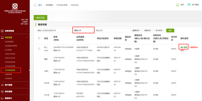 4.后台进行缴费确认操作。
