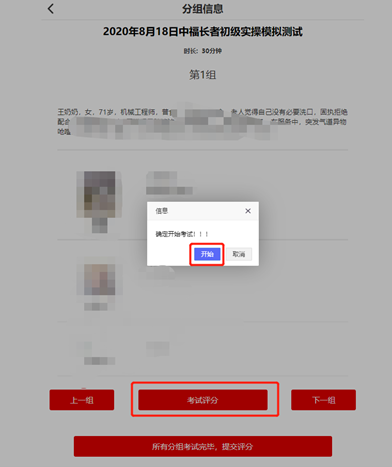 6.当前分组考试结束后,点击下一组为下一组考生继续打分;