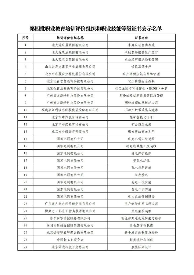 附件:第四批职业教育培训评价组织和职业技能等级证书公示名单