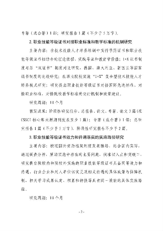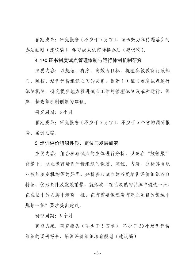 (三)课题研究坚持应用对策研究为主、基础理论研究为辅,要聚焦1+X证书制度试点工作需要,体现鲜明的时代特征、问题导向和创新意识,重在提出针对性对策建议、规程文本、信息平台或软件等,为1+X证书制度试点工作提供参考;