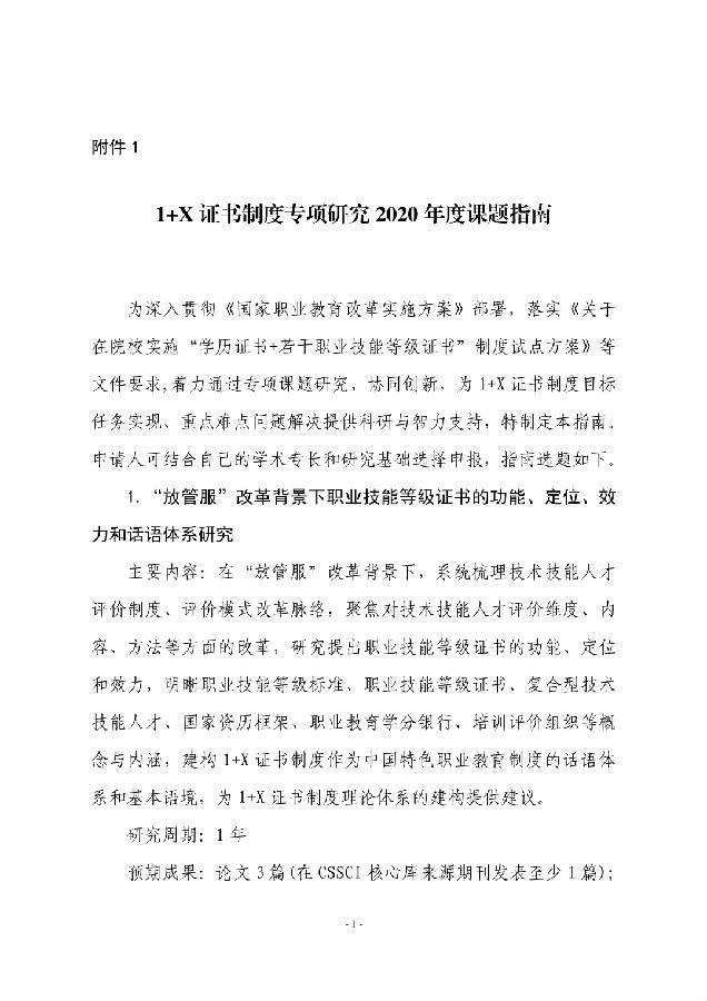 附件1 :1+X证书制度专项研究2020年度课题指南