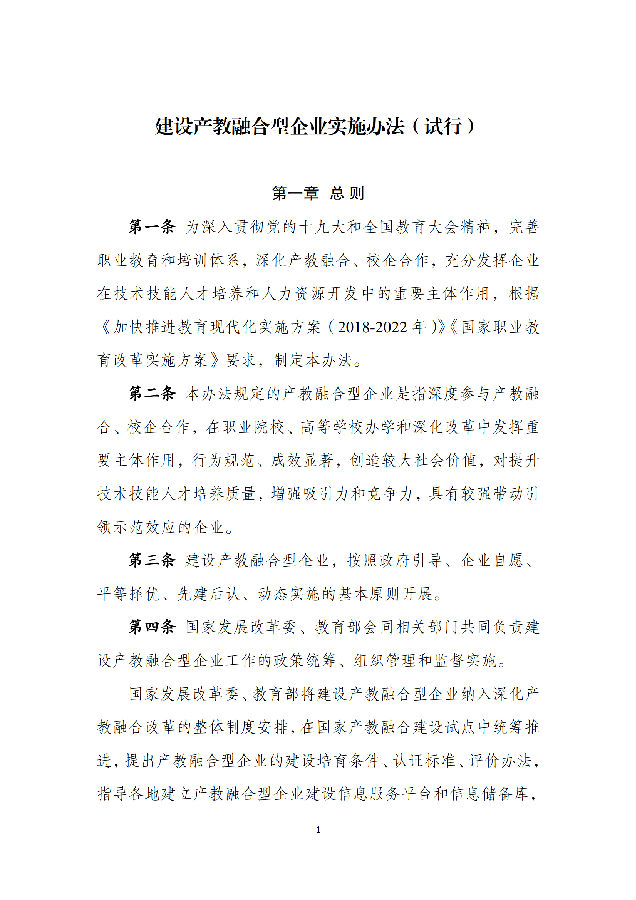 国家发展改革委 教育部关于印发《建设产教融合型企业实施办法(试行)》的通知
