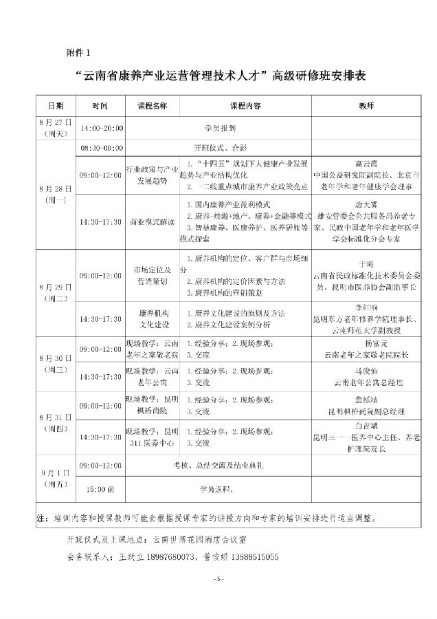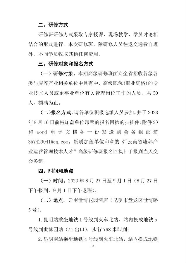 培训通知 | 关于举办云南省 2023 年专业技术人才知识更新工程 “云南省康养产业运营管理技术人才高级研修班”的函