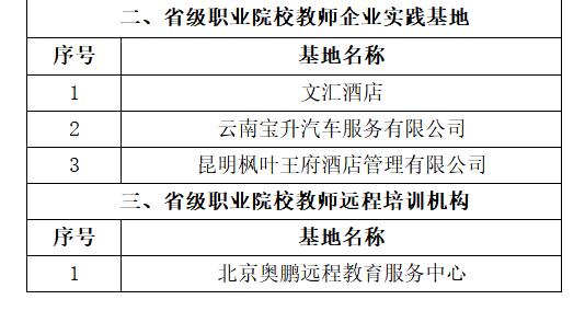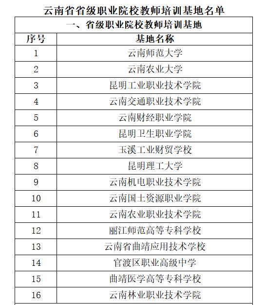 关于云南省省级职业院校教师培训基地名单的公示