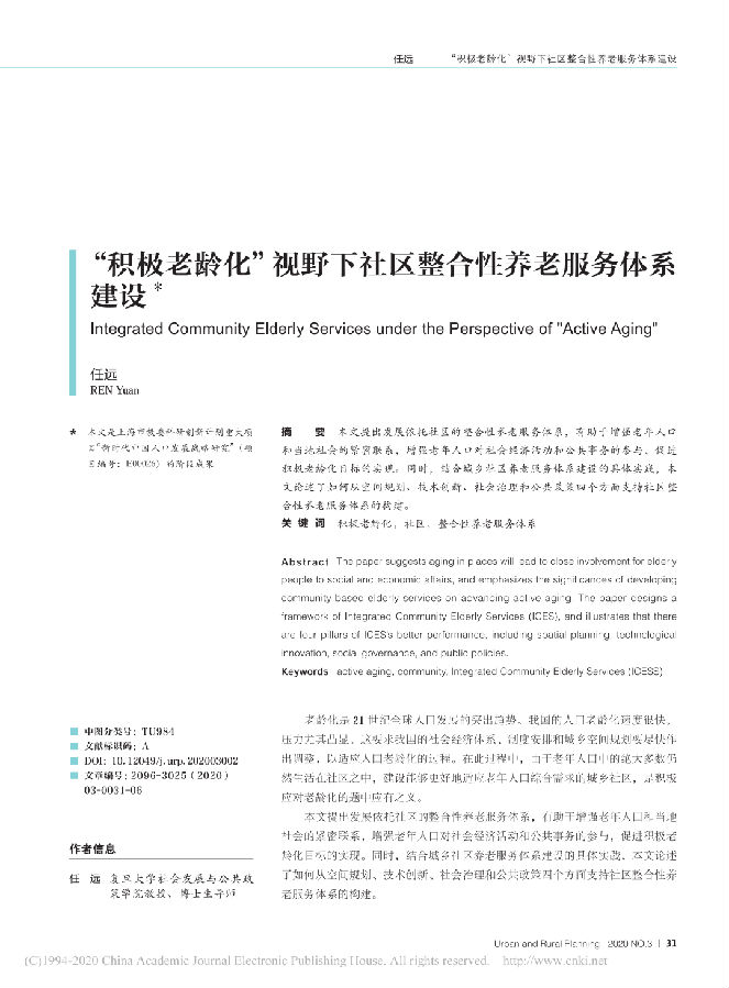 积极老龄化与社区整合性养老服务体系建设