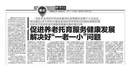 【中央深改委:健全老有所养幼有所育的政策体系 扩大多元主体多种方式的服务供给】国家主席习近平11月2日下午主持召开中央全面深化改革委员会第十六次会议,会议强调,促进养老托育服务健康发展,解决好“一老一小”问题,对保障和改善民生、促进人口长期均衡发展具有重要意义。要立足当前、着眼长远,根据人口分布和结构变化,巩固家庭养老育幼基础地位,强化政府保基本兜底线职能,健全老有所养幼有所育的政策体系,扩大多元主体多种方式的服务供给,促进服务能力提升和城乡区域均衡发展不断取得新进展。