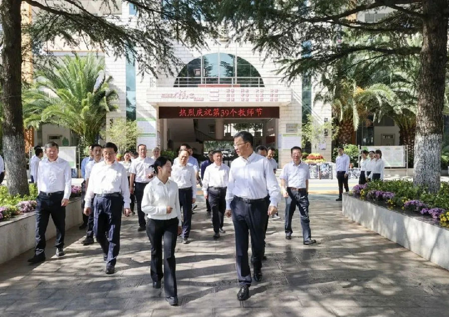 9月10日,怀进鹏深入昆明理工大学、云南大学、曲靖市第二小学、云南能源职业技术学院、隆基硅材料有限公司调研有关工作,并向全国广大教师和教育工作者致以节日祝福。